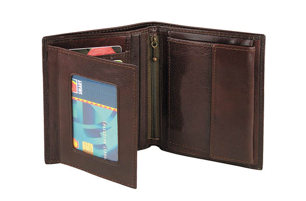 Portfel wyposażony w miejsce na bilon, 2 kieszenie na banknoty, 4 miejsca na karty kredytowe, 5 kieszeni na dokumenty, kieszeń zapinaną na suwak. Portfel pakowany w drewaniane pudełko. Na portfelach wykonujemy tłoczenie lub grawer. Istnieje także możliwość wykonania graweru na pudełku.