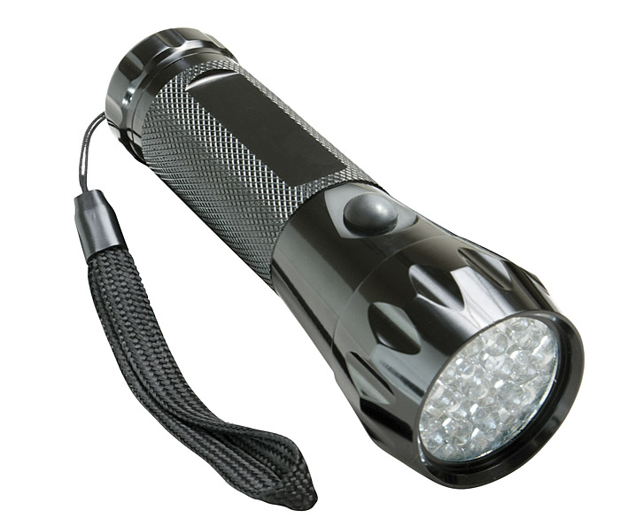 Duża latarka wykonana z metalu. Posiada 17 diod LED, pasek na rękę, oraz miejsce na grawer. Wymaga baterii: AAA x 3 szt. - baterie nie są dołączone. Latarka pakowana w praktyczne parciane etui.