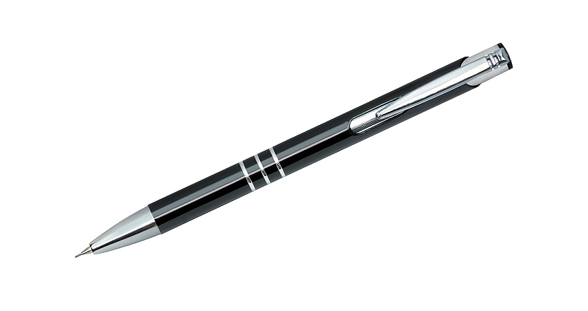 Metalowy ołówek KALISO o metalizowanej chromowanej powierzchni. Ołówek automatyczny z 3 ringami. Logo grawerujemy na powierzchni ołówka.