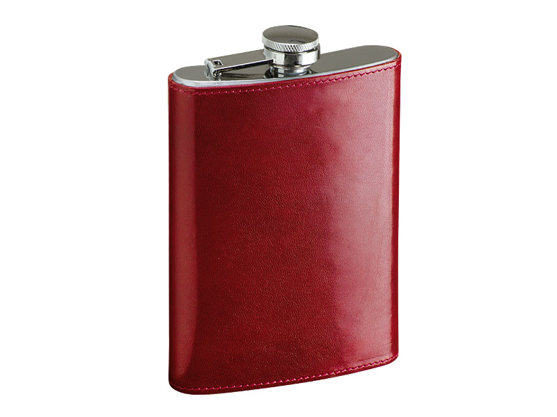 Piersiówka o pojemności 240 ml w oprawie ze skóry naturalnej. Na piersiówce wykonujemy grawer logo lub tłoczenie. Możliwość dokupienia ozdobnego pudełka o indeksie 07070.
